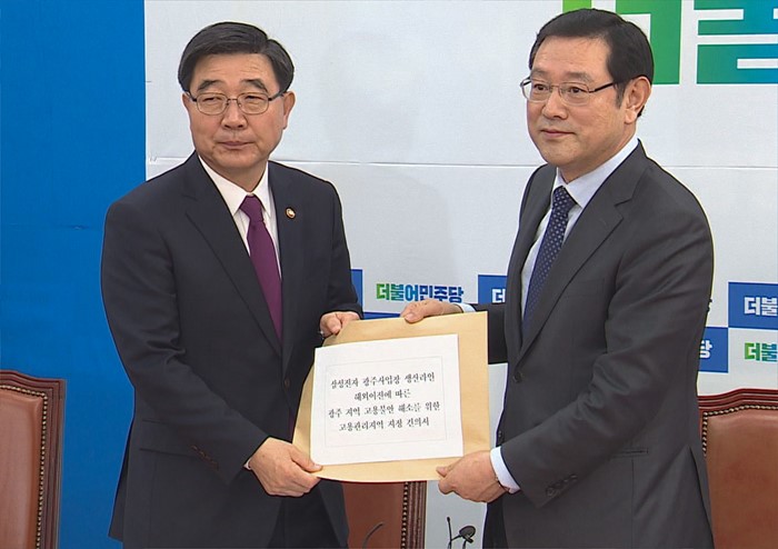| △ 이기권 장관에게 건의서 전달하는 이용섭 |