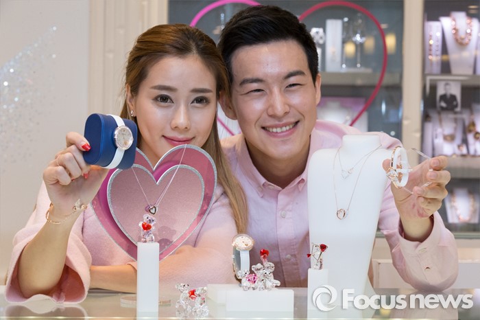 (서울=포커스뉴스) 9일 오전 중구 롯데백화점 본점에서 스와로브스키(SWAROVSKI)의 '화이트데이 컬렉션'을 모델들이 선보이고 있다. 제품은 디어(Dear) 네크리스와 뱅글, 블로우(Blow) 이어링, 데이타임(Daytime) 워치로 구성되어 있다.