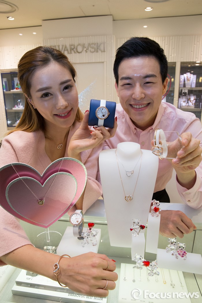 (서울=포커스뉴스) 9일 오전 중구 롯데백화점 본점에서 스와로브스키(SWAROVSKI)의 '화이트데이 컬렉션'을 모델들이 선보이고 있다. 제품은 디어(Dear) 네크리스와 뱅글, 블로우(Blow) 이어링, 데이타임(Daytime) 워치로 구성되어 있다.