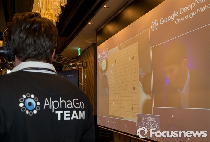 (서울=포커스뉴스) 9일 오후 서울 종로구 포시즌스 호텔에서 열린 이세돌 9단과 알파고의 '구글 딥마인드 챌린지 매치'에 참석한 구글 알파고 관계자가 대국을 관전하고 있다.