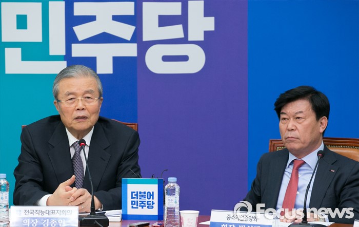 (서울=포커스뉴스) 김종인 더불어민주당 비대위 대표가 9일 오후 서울 여의도 국회에서 열린 중소기업중앙회 회장단 총선과제 전달식에 참석해 인사말을 하고 있다. 오른쪽은 박성택 중소기업중앙회장.