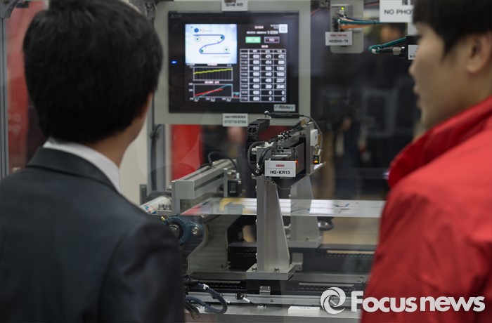 (서울=포커스뉴스) 9일 오후 서울 강남구 코엑스에서 열린 '오토메이션 월드 2016’ 한국미쓰비시전기 오토메이션 부스에서 관람객이 설치된 전시물을 살펴보고 있다.