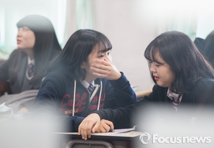 (서울=포커스뉴스) 10일 오전 서울 서대문구 명지고등학교에서 1학년 학생들이 2016학년도 첫 전국연합학력평가를 앞두고 마지막 공부를 하고 있다.