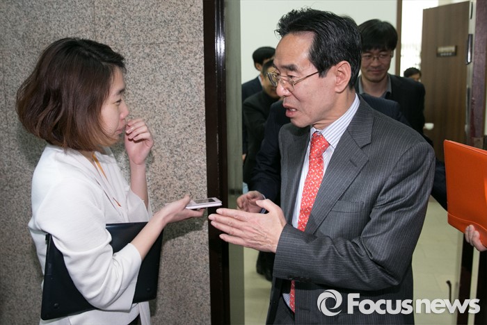 | △ 회의 마친 홍창선 공천관리위원장 |