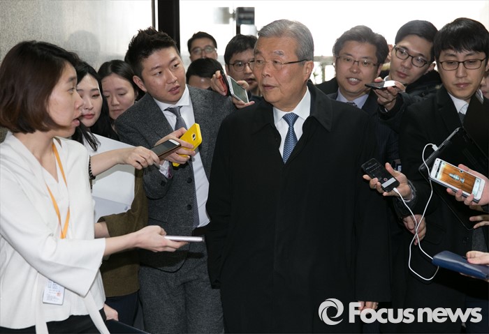 | △ 취재진 질문 답하는 김종인 |