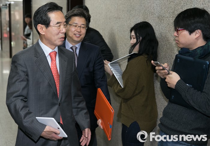 | △ 김종인 비대위 대표와 논의 위해 이동하는 홍창선 |