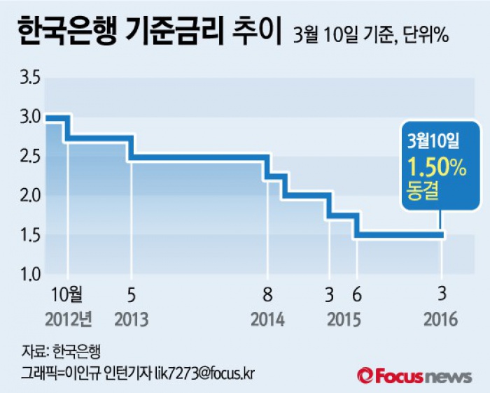 (서울=포커스뉴스) 한국은행 금융통화위원회(금통위)는 10일 정례회의를 열고 3월 기준금리를 연 1.50%로 동결하기로 결정했다. 지난해 6월 0.25% 포인트 인하된 뒤 9개월째 같은 수준이다.