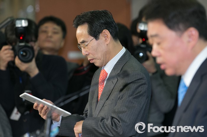 | △ 태블릿PC 보는 홍창선 공천관리위원장 |