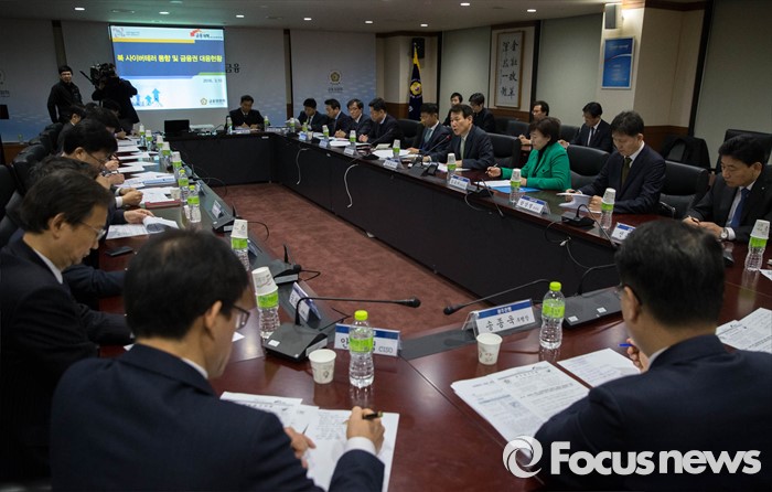 (서울=포커스뉴스) 10일 오전 서울 중구 금융위원회에서 정은보(오른쪽 네번째) 금융위원회 부위원장이 주재하는 '北'사이버 테러 대비 회의'가 열리고 있다.