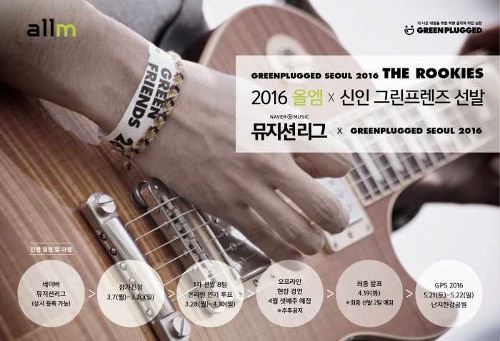 공모접수는 뮤지션 오픈 플랫폼인 네이버 뮤직 뮤지션리그를 통해 진행되며, 오는 20일까지 '2016 올엠X신인 그린 프렌즈 선발' 특별 페이지(me2.do/58gX7xC5)에서 신청 가능하다.