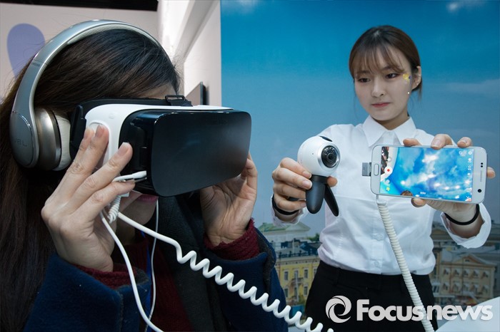 (서울=포커스뉴스) 10일 오전 서울 중구 신라호텔에서 열린 삼성전자의 스마트폰 '갤럭시 S7 엣지와 갤럭시 S7'로 사용 가능한 기어360을 관람객이 체험하고 있다.