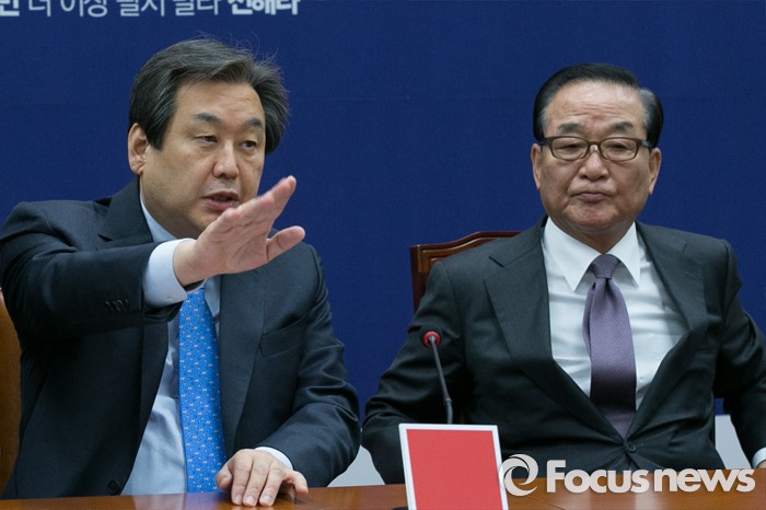 (서울=포커스뉴스) 김무성(왼쪽) 새누리당 대표가 10일 오전 서울 여의도 국회에서 열린 최고위원회의에 참석해, 욕설 논란을 일으킨 윤상현 의원의 최고위 소명 기회 부여에 대해 거부 의사를 표하고 있다.