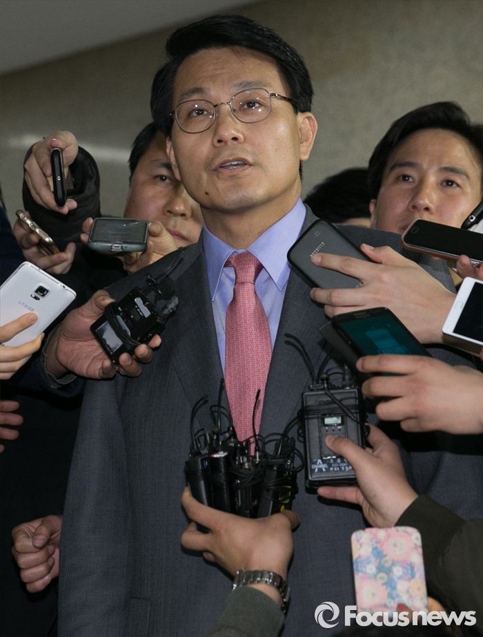 (서울=포커스뉴스) '김무성 욕설 녹취록'으로 논란을 일으킨 윤상현 새누리당 의원이 10일 오전 서울 여의도 국회에서 비공개 최고위원회의에 참석한 뒤 취재진 질문에 답하고 있다. 전날 김무성 대표와의 면담이 불발된 윤 의원은 이날 오전 김 대표의 자택을 방문해 사과했다고 전했다.
