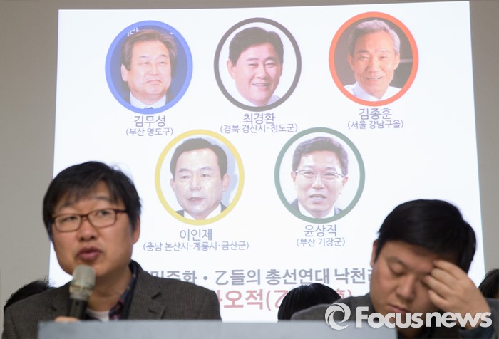 (서울=포커스뉴스) 10일 오전 서울 종로구 참여연대에서 을(乙)총선연대, 참여연대를 비롯한 시민단체 회원들이 '경제민주화 을(乙)들의 총선연대 집중 낙천리스트 발표 기자회견'을 하고 있다.