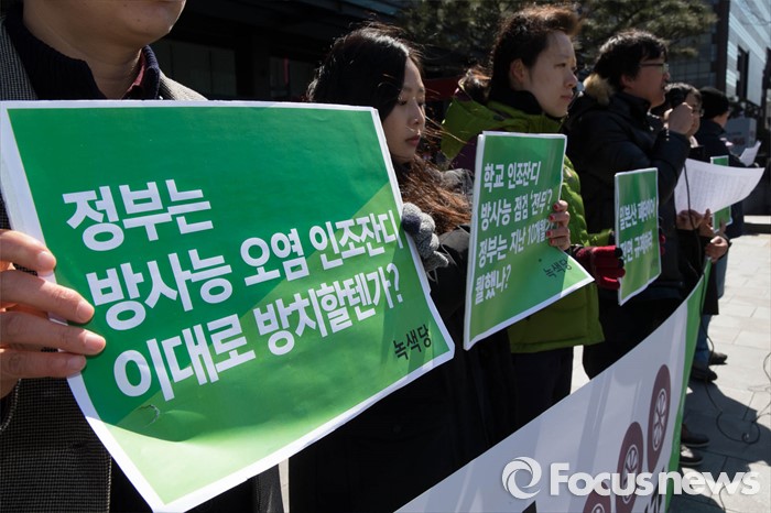이날 녹색당과 청소년녹색당은 이날 기자회견을 통해 지난 2011년 후쿠시마 참사 이후 전국 751개교의 인조잔디 조성에 일본산 폐타이어가 사용됐다며 정부의 조사를 요구했다.