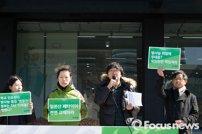 이날 녹색당과 청소년녹색당은 이날 기자회견을 통해 지난 2011년 후쿠시마 참사 이후 전국 751개교의 인조잔디 조성에 일본산 폐타이어가 사용됐다며 정부의 조사를 요구했다.