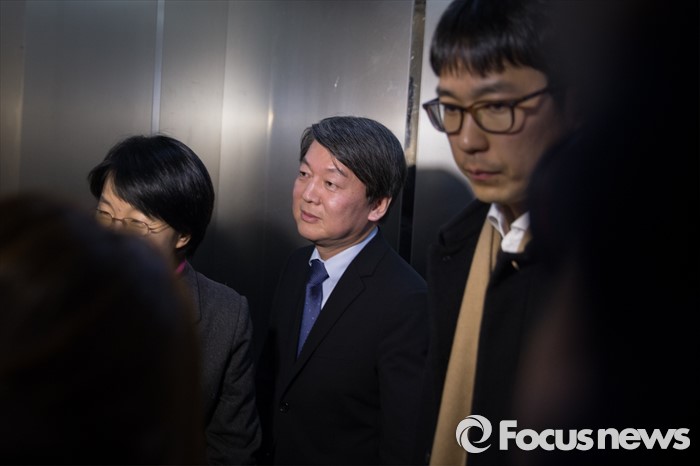 (서울=포커스뉴스) 10일 오후 서울 마포구 국민의당 당사에서 안철수 (가운데)국민의당 상임공동대표가 기자들과의 만남을 가진 후 당사를 떠나고 있다.