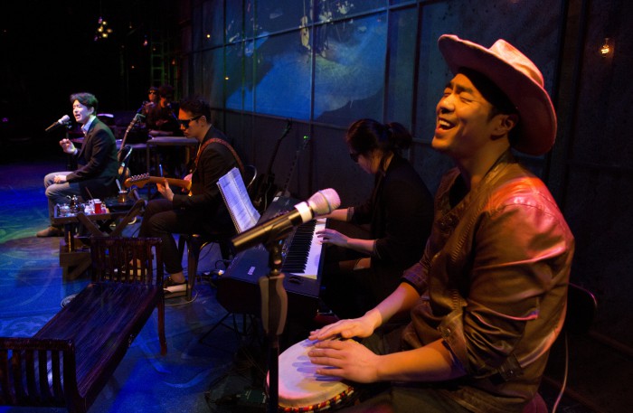 지난 4일 개막한 연극 '터키블루스'는 오는 4월10일까지 서울 종로구 홍익대 대학로 아트센터 소극장에서 공연된다. 만 13세 이상 관람가능하며 입장권은 전석 3만5000원이다.연극 '터키블루스' 출연 배우들의 연기 중 같이 노래를 부르는 장면.<사진제공=연우무대>연극 '터키블루스' 주인공 주혁이 허공을 쳐다보며 시완을 그리워하는 장면.<사진제공=연우무대>'터키블루스' 주인공 시완이 기타 치며 노래 부르는 장면.<사진제공=연우무대>