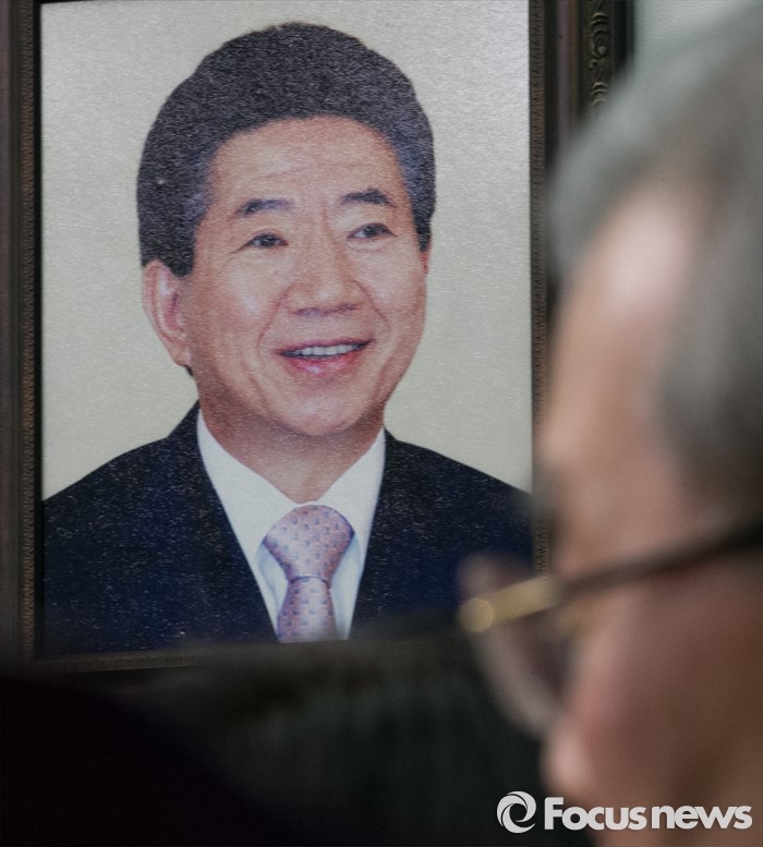 | △ 김종인 너머 보이는 故 노무현 전 대통령 사진 |