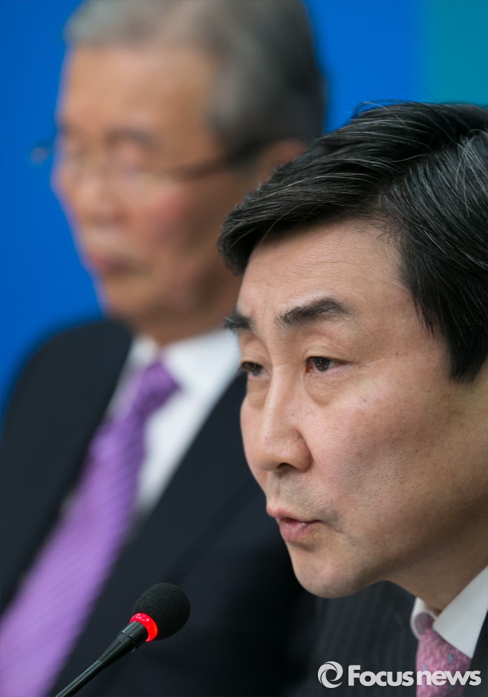(서울=포커스뉴스) 이종걸 더불어민주당 원내대표가 11일 오전 서울 여의도 국회에서 열린 비대위-선대위 연석회의에 참석해 발언하고 있다.