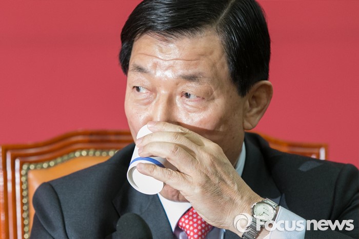 (서울=포커스뉴스) 황진하 새누리당 사무총장이 11일 오전 서울 여의도 국회에서 열린 원내대책회의에 참석해 물을 마시고 있다. 앞서, 지난 10일 황 사무총장은 이한구 공관위원장이 독선적으로 공관위를 운영한다며 회의 불참을 선언했다.