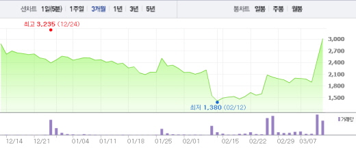 가장 큰 폭의 상승세를 보이고 있는 업체는 에이디칩스다. 에이디칩스는 이날 9시36분 현재 전일 대비 무려 21.69%(540원) 상승한 3000원에 거래 중이다. 에이디칩스는 인공지능 핵심 부품인 마이크로컨트롤러칩을 만드는 업체다.