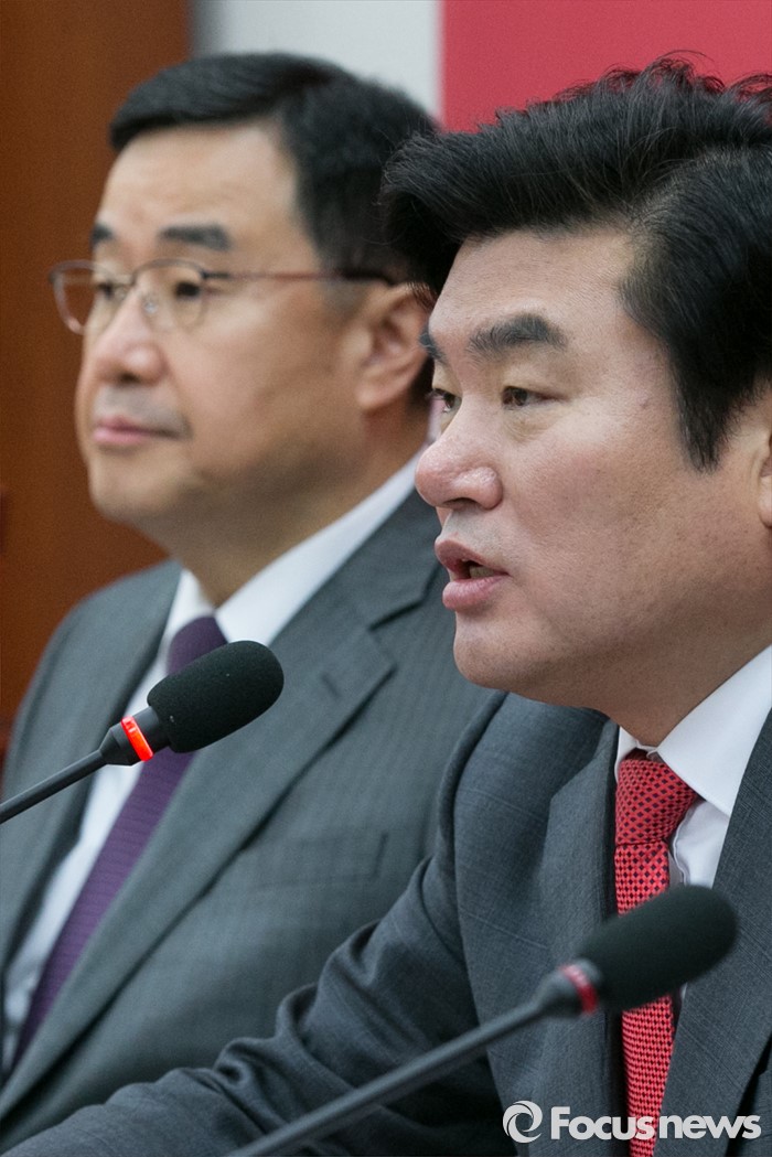(서울=포커스뉴스) 원유철(오른쪽) 새누리당 원내대표가 11일 오전 서울 여의도 국회에서 열린 원내대책회의에 참석해 모두발언하고 있다.