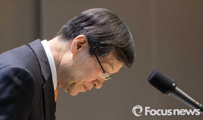 (서울=포커스뉴스) 11일 오전 서울 강남구 포스코센터에서 열린 정기주주총회에 참석한 권오준 포스코 회장이 인사말을 마친 후 인사하고 있다.