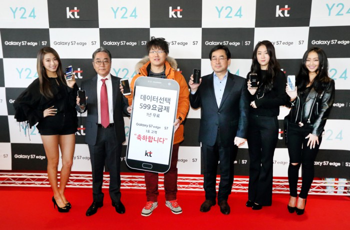 KT의 갤럭시S7 1호 개통자 이원구(39)씨는 영하 5도까지 떨어지는 추위 속에서도 전날인 10일 오후 7시부터 갤럭시S7을 쥐는 순간을 손꼽아 기다렸다. 11일 오전 마침내 갤럭시S7를 손에 넣은 그는 “오래 기다렸지만 1호 가입자가 돼 좋다”고 소감을 말했다.