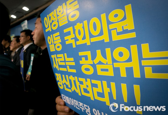(서울=포커스뉴스) 11일 오후 서울 여의도 국회 정론관에서 더불어민주당 공천관리위원회 2차 공천배제(컷오프) 명단에 포함된 부좌현 의원의 지역구 당원들이 발표 철회를 촉구하는 기자회견을 하고 있다.