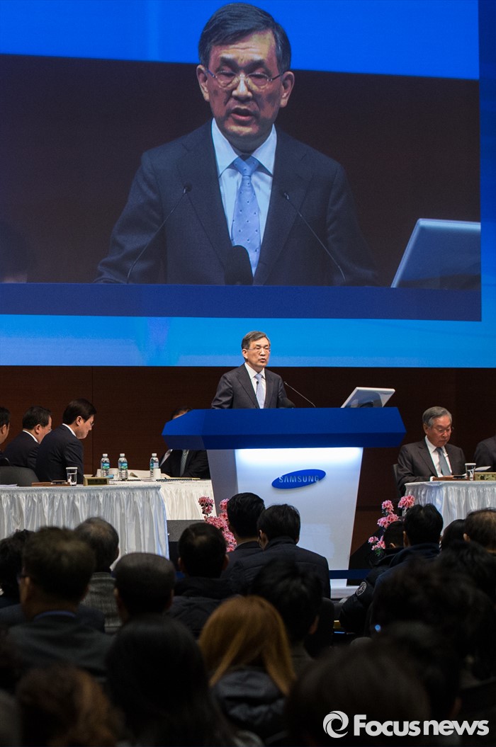 서울 서초사옥 다목적홀에서 열린 47기 삼성전자 주총에선 재무제표 승인, 이사 선임, 이사 보수한도 승인, 정관 일부 변경 건이 다뤄졌다. 정관 변경은 그동안 대표이사가 맡아오던 이사회 의장직을 이사 중에서 선임할 수 있도록 하는 것이다.