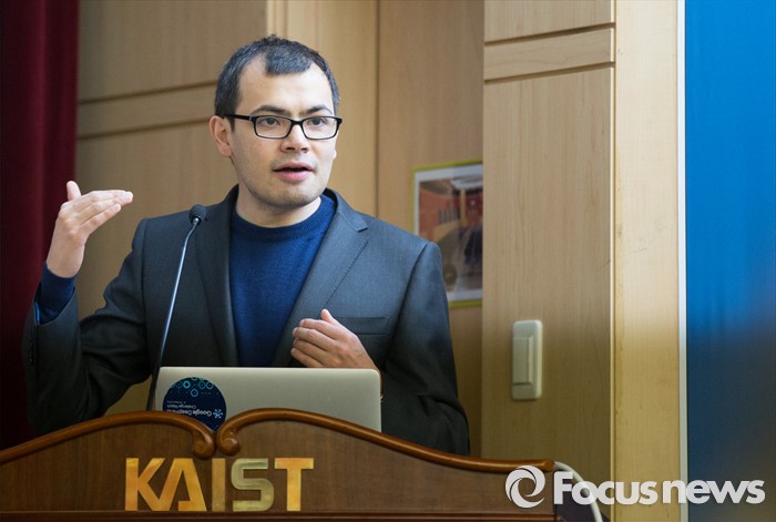 (대전=포커스뉴스) 이세돌 9단과 겨루는 인공지능 컴퓨터 알파고를 개발한 구글 딥마인드 최고경영자 데미스 하사비스가 11일 오후 대전 유성구 한국과학기술원(KIST)에서 '인공지능과 미래' 라는 주제로 강연을 하고 있다.