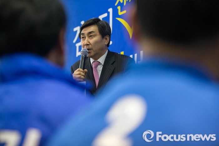 (공주=포커스뉴스) 이종걸 더민주 원내대표가 11일 오후 충남 공주시에서 열린 더민주 박수현 의원의 선거사무소 개소식에 참석, 박 의원의 지지를 호소하며 발언하고 있다.