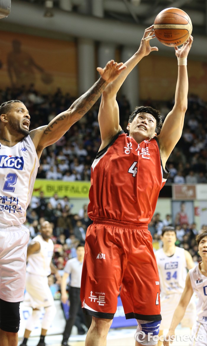 (안양=포커스뉴스) 11일 안양실내체육관에서 열린 2015-2016 프로농구 KGC-KCC 4강플레이오프 3차전에서 KGC 오세근이 KCC 에밋에 앞서 리바운드볼을 잡아내고 있다.