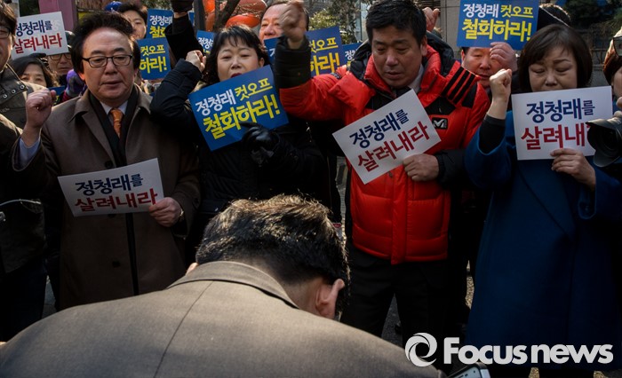 | △ 지지자들에게 허리 숙인 정청래 |