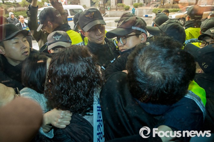 | △ 경찰과 충돌하는 정청래 지지자들 |