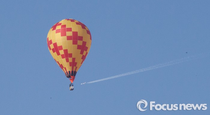 (논산=포커스뉴스) 12일 오전 충남 논산 강경읍 수변공원 일대에서 열린 2015-2016시즌 코리아열기구그랑프리 5차전 ‘오프로드컵’에서 대회에 출전한 선수들이 공중 레이스를 펼치고 있다.