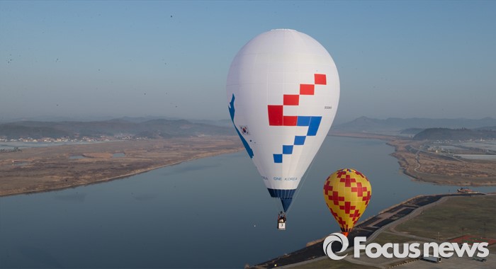 (논산=포커스뉴스) 12일 오전 충남 논산 강경읍 수변공원 일대에서 열린 2015-2016시즌 코리아열기구그랑프리 5차전 ‘오프로드컵’에서 대회에 출전한 선수들이 공중 레이스를 펼치고 있다.