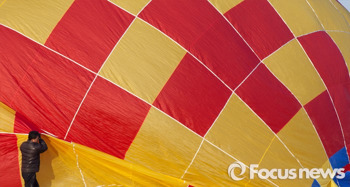 (논산=포커스뉴스) 12일 오전 충남 논산 강경읍 수변공원 일대에서 열린 2015-2016시즌 코리아열기구그랑프리 5차전 ‘오프로드컵’에서 대회에 출전한 선수들이 공중 레이스를 펼칠 준비를 하고 있다.
