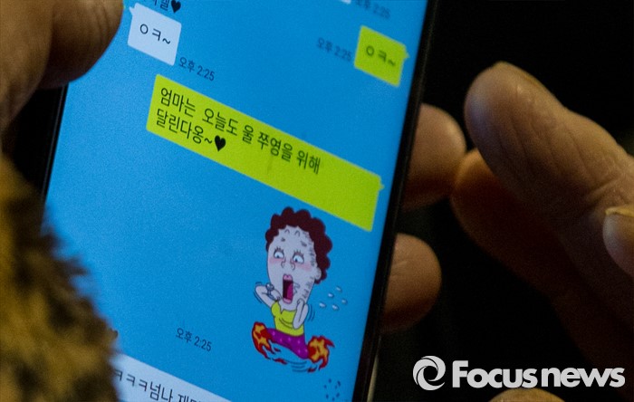 (서울=포커스뉴스) 12일 오후 서울 성동구 한양대학교 올림픽체육관에서 열린 '2017학년도 대학입시설명회'에 참석한 한 학부형이 딸에게 메시지를 보내고 있다.