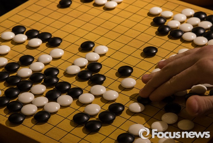 (서울=포커스뉴스) 이세돌 9단과 인공지능 알파고의 '구글 딥마인드 챌린지 매치' 3차 대국이 열린 12일 오후 서울 종로구 포시즌스 호텔 내 공개해설장에서 한 관계자가 대국을 따라 돌을 놓고 있다.