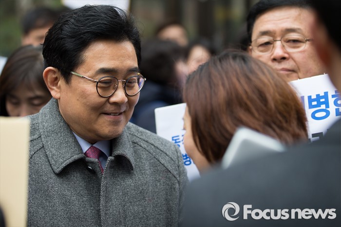 (서울=포커스뉴스) 20대 총선 공천 배제된 전병헌 더불어민주당 의원이 13일 오전 공직선거후보자추천재심위원회에 재심신청서 제출 후 서울 여의도 당사를 나서며 지지자들과 인사하고 있다.