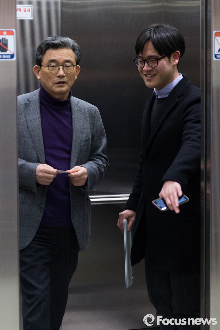 | △ 엘레베이터 내리는 이한구 |