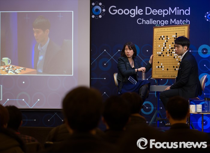 (서울=포커스뉴스) 한국 해설자들이 13일 오후 서울 종로구 포시즌스호텔에서 구글 딥마인드 챌린지 매치, 인공지능 바둑프로그램 알파고와의 네번째 대국을 해설하고 있다.