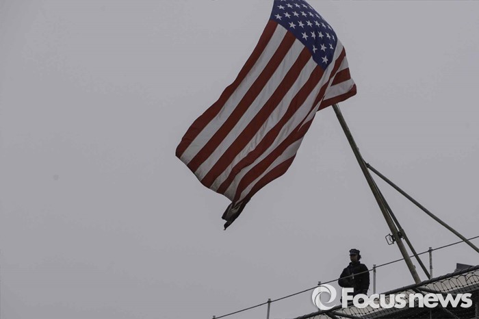 (부산=포커스뉴스) 13일 오후 부산 남구에 위치한 해군작전사령부에 입항한 존 C. 스테니스 핵항모가 취재진에게 공개되었다. 키리졸브 독수리 훈련에 참가하기 위해 한국을 찾은 스테니스항모는 길이 333m, 폭 78m,탑승 승조원은 6500명에 달하는 미 해군 핵심항모 중 하나다. 항모 후미의 성조기가 펄럭이고 있다.
