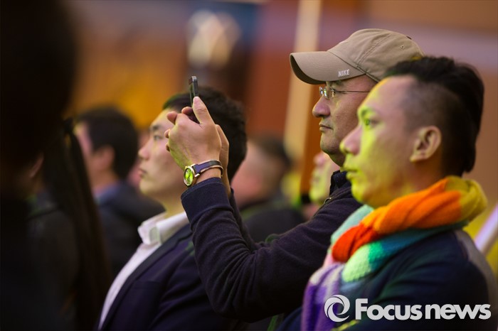(동관/중국=포커스뉴스)중국 광동성 동관에서 12일 열린 제27회 미시즈월드 미인대회에서 남성 관람객이 참가자들 사진을 찍고 있다.