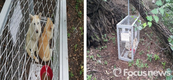 김창보 서울시 시민건강국장은 "시민안전과 광견병 등 전염병 발생예방 및 생태계 교란 방지를 위해 유기견들에 대한 집중 포획활동을 실시하게 됐다"고 말했다.포획틀에 포획된 유기견. <사진제공=서울시>