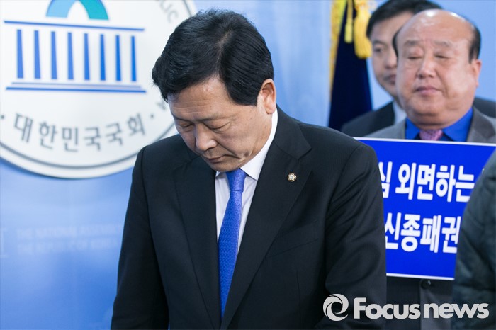 (서울=포커스뉴스) 공천 배제가 결정된 강동원 더불어민주당 의원이 14일 오전 서울 여의도 국회 정론관에서 탈당과 함께 무소속 출마를 선언한 뒤, 단상을 내려오고 있다.