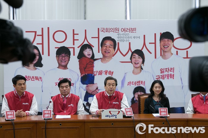 (서울=포커스뉴스) 김무성(오른쪽 두번째) 새누리당 대표가 14일 오전 서울 여의도 국회에서 열린 최고위원회의에 참석해 모두발언하고 있다.