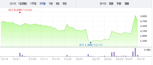 가장 큰 폭의 하락세를 기록하고 있는 업체는 에이디칩스다. 에이디칩스는 이날 9시49분 현재 전일 대비 무려 11.02%(335원) 하락한 2705원에 거래 중이다. 에이디칩스는 인공지능 핵심 부품인 마이크로컨트롤러칩을 만드는 업체로 대국 이후 이틀 연속 상승세를 보여왔다.